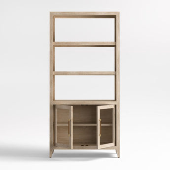 Hemos trasladado la refinada elegancia de nuestras populares mesas de acento Clairemont a una colección de almacenaje fabricada en roble bellamente veteado. Apoyada sobre patas cónicas, la librería de líneas limpias presenta esquinas limpias a inglete y paneles empotrados en la parte superior y los laterales. Los estantes abiertos coronan un armario Cristal en una versátil combinación de almacenamiento abierto y cerrado. Los tiradores Brass con envoltura de cuero envejecido proporcionan acceso junto con una nota de gracia de materiales mixtos.