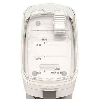 - Depósito de agua extraíble de 25 onzas con marcas de medición