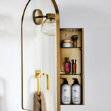Bordeado con una delgada banda brass , nuestro armario con espejo curva un sutil arco de moderna elegancia. Fabricado en acero inoxidable brass, el botiquín de líneas limpias ofrece una puerta de Cristal espejado que se abre a tres estantes. Puede empotrarse o fijarse a la pared, nuestro exclusivo botiquín de brass Edge complementa los cuartos de baño con su estilo contemporáneo y minimalista.
