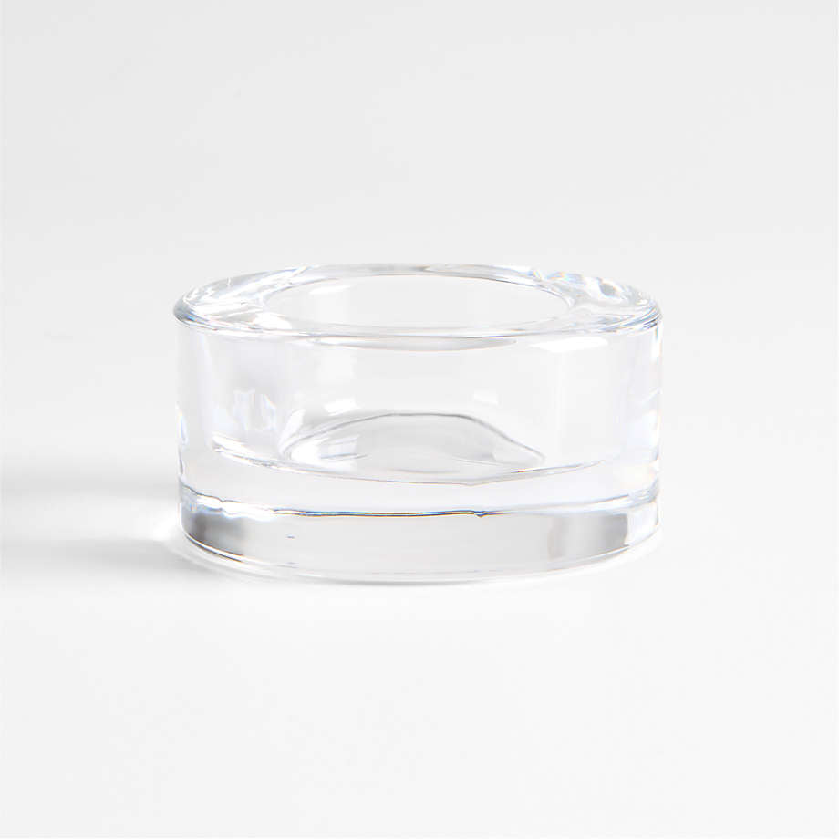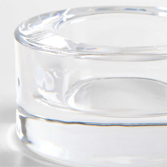 Vuelve uno de los favoritos de los archivos de Crate & Barrel. Nuestro portavelas Essential Modern combina la calidad artesanal con un estilo atemporal. Presionado a mano por expertos artesanos, este pequeño portavelas rodea una velita con un círculo deCristal clear y gruesoCristal una base sólida. Coloque varios a lo largo de una mesa de comedor larga o sobre la repisa de la chimenea para crear un ambiente moderno y acogedor.