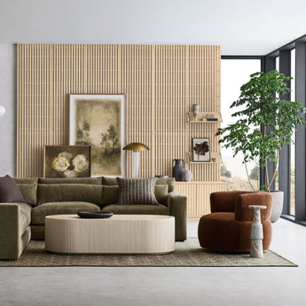 Nuestra llamativa mesa de centro Kahn animará su salón con un diseño limpio y escultural. Formada con un atrevido perfil de pista de carreras, la mesa muestra el carácter texturizado y picado del hormigón blanco roto moldeado con un patrón acanalado para crear un intrigante juego de luces y sombras. La encimera de madera insertada tiene un acabado claro que complementa el veteado natural de la madera para lograr la mezcla perfecta de materiales.