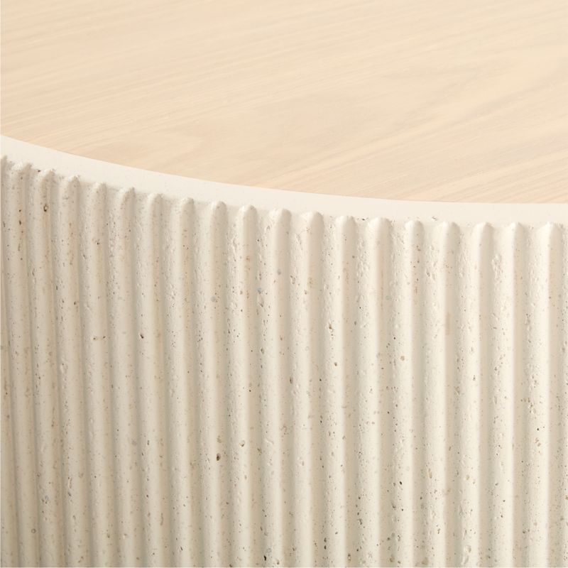 Mesa baja ovalada Kahn de hormigón acanalado y madera de roble de 62