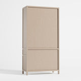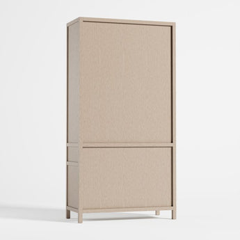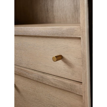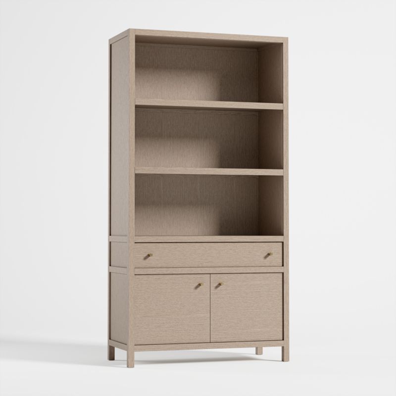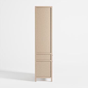 Refinado y audaz, Keane lleva el almacenamiento doméstico al siguiente nivel. Diseñada para crear una presencia majestuosa en la oficina, el salón o el estudio, cada pieza está fabricada en hermosa madera de meranti con un acabado rústico natural que pone el foco en la madera. Tres estantes abiertos exhiben libros y objetos de colección, mientras que un cajón y un armario de doble puerta proporcionan almacenamiento cerrado. Salpicados de pequeños tiradores de brass , los frentes planos de la estantería y los detalles de canal en los laterales realzan el diseño limpio y arquitectónico. Nuestro éxito de ventas, la colección Keane, es una exclusiva de Crate & Barrel.