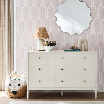 Un marco ondulado a la última moda hace de este espejo de pared redondo ondulado un acento imprescindible para las habitaciones infantiles más chulas y también para los rincones más adultos de la casa. Un bonito acabado brass cepillado confiere a los juguetones garabatos un aspecto elevado, y las caprichosas curvas hacen que cualquier espacio resulte un poco más divertido. Colóquelo encima de una cómoda o en una entrada para crear un momento alegre cada vez que alguien se refleje en él.