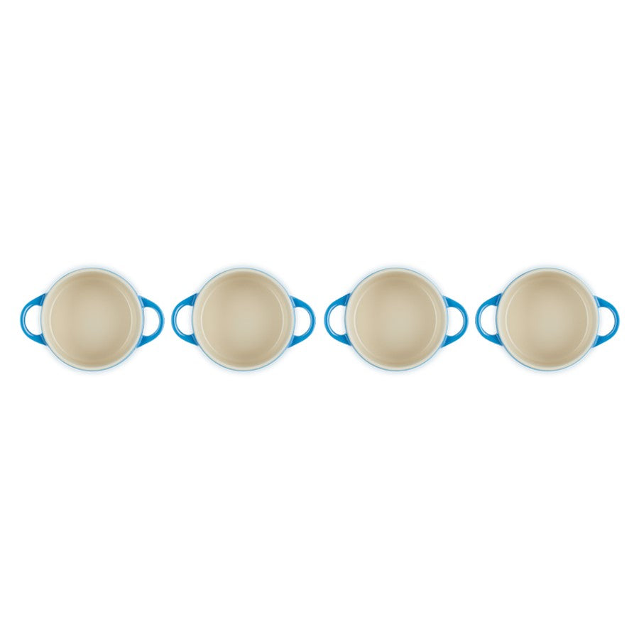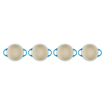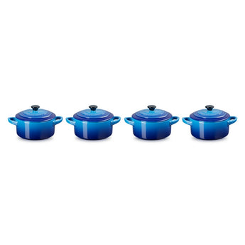 El juego de 4 mini cocottes redondas Le Creuset es una encantadora colección ideal para servir sopas, guisos, cazuelas o postres individuales. Fabricadas en gres resistente, cada mini cocotte ofrece una excelente retención del calor y resultados de cocción uniformes. El suave acabado esmaltado resiste las astillas, las manchas y las grietas, lo que garantiza una calidad duradera. Cada cocotte cuenta con una tapa hermética para conservar la humedad y el sabor. Disponibles en una variedad de colores vivos, añaden un toque de estilo a su mesa. Aptas para microondas, horno y lavavajillas, estas mini cocottes combinan practicidad y elegancia, perfectas para el uso diario o para recibir invitados.
