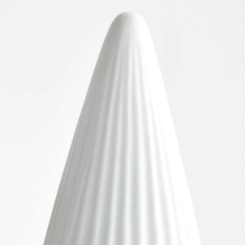 La calidez se une al minimalismo moderno en nuestro árbol iluminado. Acanalado para crear una dimensión que realce las sombras, la porcelana blanca como la nieve difunde la luz de su LED integrado en un intrigante resplandor a la vez suave y lineal. Cree un bosque escultural y llamativo para una repisa invernal o una mesa navideña agrupando este pequeño árbol de hoja perenne cónico con sus homólogos más pequeños y más grandes o mezclándolo y combinándolo con nuestros otros árboles decorativos exclusivos.