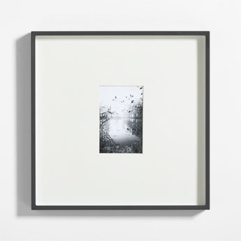 Nuestro marco negro cepillado añade un toque de dramatismo oscuro a las exposiciones de fotos e impresiones con un estilo de caja de sombras y un generoso paspartú en blanco roto. Este marco cuadrado centra unas fotos verticales de 4 "x6" en un paspartú de amplio margen para un aspecto elevado, como de galería. Exclusivo de Crate & Barrel, nuestro marco de aluminio con acabado en negro cepillado puede exhibirse en la pared, en la repisa de la chimenea o en una estantería.