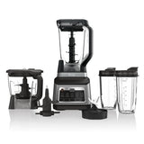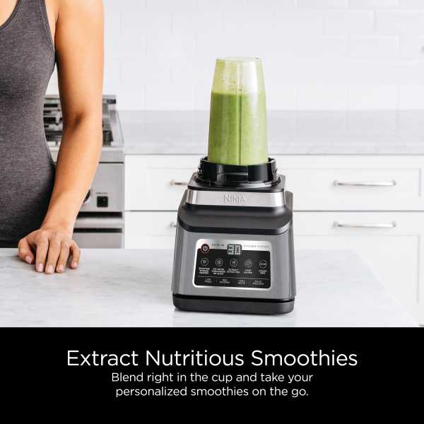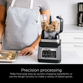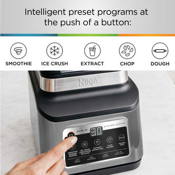 El Sistema de Cocina Profesional Plus de Ninja® con Auto-iQ® presenta un nuevo diseño moderno y más funcionalidad que el Sistema de Cocina Profesional original de Ninja.* Las Cuchillas Total Crushing® de Ninja y el Conjunto de Cuchillas Extractoras Pro® le proporcionan un hielo perfectamente picado para sus batidos, bebidas heladas y extracciones de nutrientes**. La Jarra Trituradora Total de 72 oz.† es ideal para hacer grandes tandas para toda la familia con 1400 vatios pico de potencia profesional. Además, sus vasos monodosis con tapa de pico facilitan la preparación de deliciosos batidos ricos en nutrientes sobre la marcha. Pero no se limite a las bebidas: el bol del procesador de 64 onzas proporciona un procesamiento de precisión para obtener un picado uniforme, purés suaves y hasta 2 libras de masa. La tecnología Auto-iQ proporciona programas preestablecidos que hacen el trabajo por usted, sin necesidad de adivinar. *Versus BL770, basado en el número de programas de batido disponibles