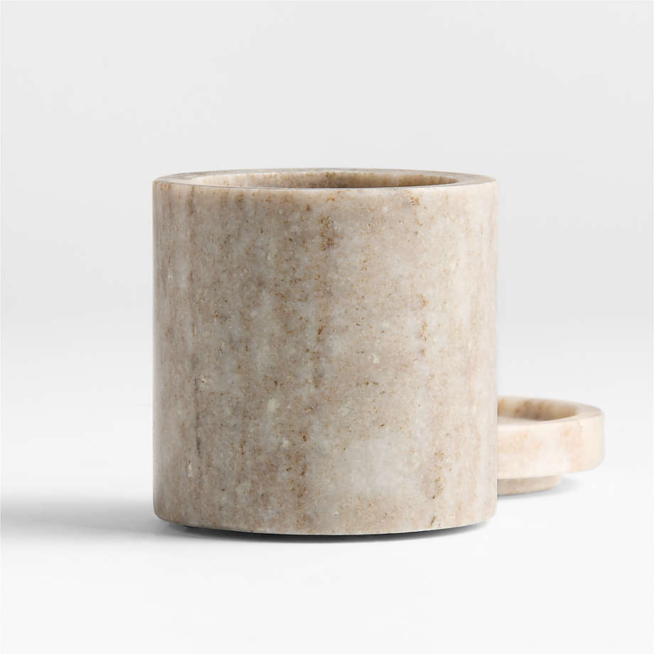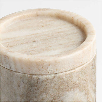 Inspirada en la calidez rústica y la belleza orgánica del centro de Italia, nuestra colección de baño Toscana exhibe un mármol beige suavemente neutro pero impactante. Estos magníficos y prácticos accesorios equipan un tocador unificado, un baño de invitados o un cuarto de baño en suite listo para recibir a los invitados. Coronado con una tapa con reborde diseñada para guardar pendientes o anillos, este bote tiene el tamaño perfecto para bastoncillos de algodón u otros artículos esenciales. Bruñido con un moderno acabado mate, cada bote de mármol fascina con sutiles variaciones de tono, textura y veteado.