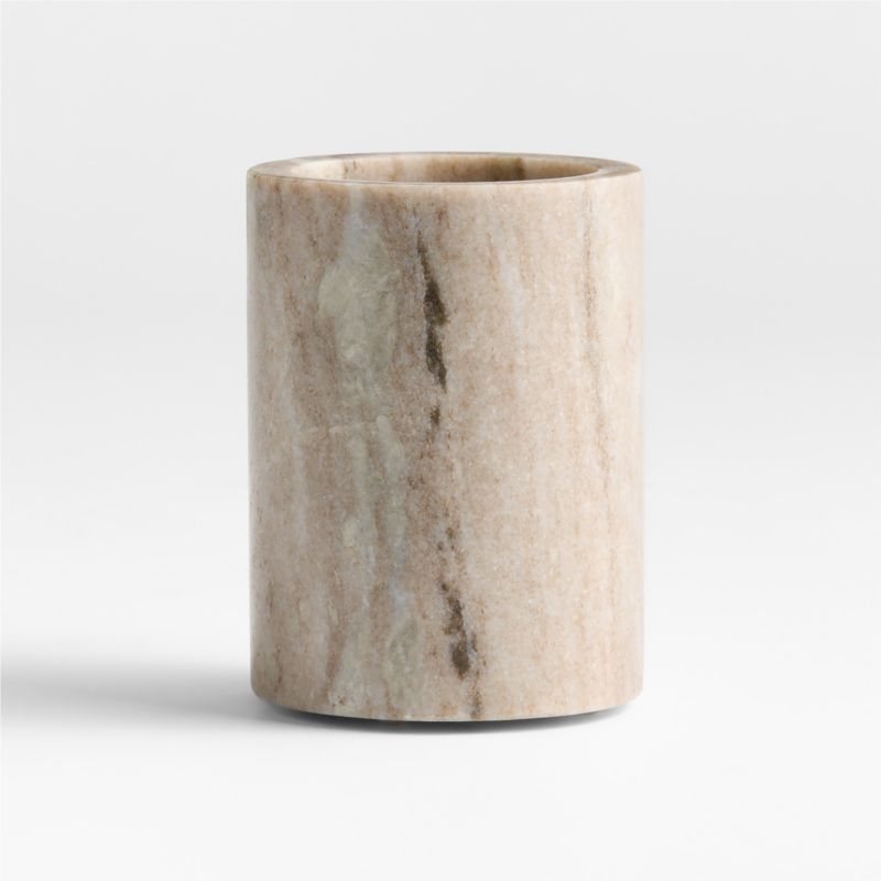 Inspirada en la calidez rústica y la belleza orgánica del centro de Italia, nuestra colección Toscana exhibe un mármol beige suavemente neutro pero impactante. Los magníficos y prácticos accesorios equipan un tocador unificado, un baño de invitados o un cuarto de baño en suite listo para recibir. Este vaso sirve para guardar un cepillo de dientes o para beber un sorbo de agua a medianoche. Cada vaso, pulido con un moderno acabado mate, fascina con sus sutiles variaciones de tono, textura y veteado.