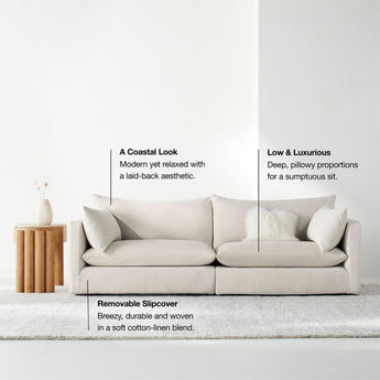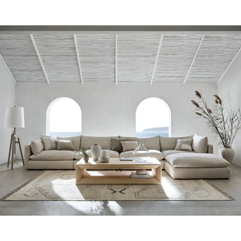 Es hora de relajarse con nuestra colección Seccionales con tapizado desenfundable. Bautizada con el nombre de nuestra actividad favorita, esta belleza moderna se entrega con suntuosos cojines desenfundables y proporciones relajantes. Compuesta por una otomana y dos sillas sin brazos flanqueadas por sillas a derecha e izquierda, la Seccionales presenta brazos delgados y cubiertas bajas que dejan espacio para cojines acolchados de respaldo y asiento para una sentada excepcionalmente profunda y cómoda. Para darle más flexibilidad, la combinación Seccionales reversible de cinco piezas le permite subir la otomana a cualquiera de los extremos para sentarse como en una chaise longue. Las fundas desenfundables en una duradera pero suave mezcla de algodón y lino mantienen el aspecto fresco y desenfadado.