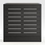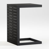 La sencilla y fresca Alfresco tiene un aspecto contemporáneo que siempre resulta fresco. Bien fabricada con materiales resistentes al agua, está diseñada para acoger entretenimientos de clima cálido temporada tras temporada. El armazón de aluminio inoxidable de la mesa auxiliar, con listones de imitación de madera que emulan el aspecto de la madera auténtica, está acabado en un duradero revestimiento en polvo negro. Su ingenioso diseño multitarea la convierte de mesa auxiliar en forma de C a mesa auxiliar de menor altura, otomana o asiento extra.