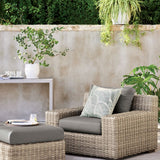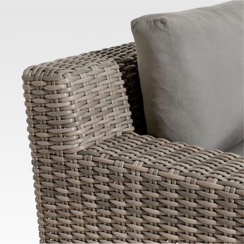 Baja y lista para descansar, nuestra tumbona Abaco Exterior extiende una invitación a recostarse y relajarse. Tejido a mano con una trama gruesa y texturizada, el mimbre de resina resistente a la intemperie exhibe una variedad de tonos gris-marrón para replicar el color matizado del ratán bien desgastado. La moderna y atrevida estructura de aluminio ligero ofrece un asiento profundo y unos brazos anchos y cuadrangulares perfectos para tomar una bebida fresca. ^ Un cojín recubierto de acrílico Sunbrella resistente a la decoloración, las manchas, el agua y el moho añade una capa extra de comodidad. La tumbona Exterior Abaco con cojines Sunbrella ® color grafito es una exclusiva Crate and Barrel .