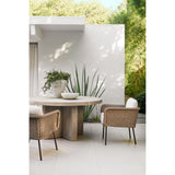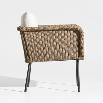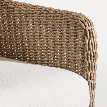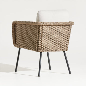 La definición de lo moderno costero, nuestra colección Grotta Exterior aporta un aire desenfadado al mimbre clásico con siluetas esculpidas y cojines de líneas limpias y hundibles. El mimbre de resina resistente a la intemperie teje el ventoso armazón de la silla de comedor con bordes redondeados en un flujo continuo. Cojines suaves y de proporciones atrevidas cubiertos de tela resistente a la intemperie de color marfil, con un asiento afelpado y un respaldo acolchado. Las delgadas patas de acero inoxidable acabado en negro mate aportan un elemento de frescura de mezcla de materiales. La silla de comedor de mimbre Grotta Exterior es una exclusiva de Crate & Barrel.