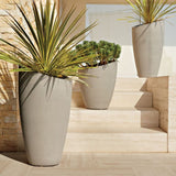 Una ligera inclinación en el borde hace que estos maceteros pasen de lo esperado a lo deliciosamente diferente. Las piezas más llamativas flanquean la puerta para dar una bienvenida contemporánea o colócalas juntas, altas y bajas, para crear una dinámica exhibición de plantas en macetas. Fabricadas con una combinación ligera de fibra de vidrio, cemento y arena que funciona tanto en interiores como en exteriores.