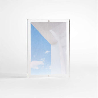 Un bloque de acrílico clear pone el foco en una sola fotografía para una presentación flotante que es limpia, moderna y llamativa. Nuestro marco acrílico clear , una exclusiva de Crate and Barrel , también es ideal para encerrar talones de billetes, postales u otros recuerdos y efímeros. Agrupe marcos en bloque de varios tamaños para crear una presentación intrigante.