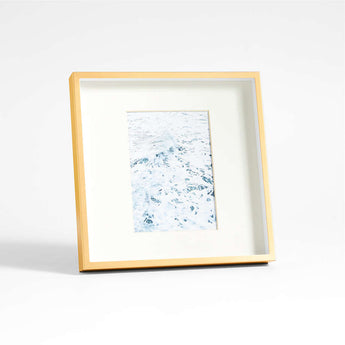 Nuestros marcos cepillados brass añaden un toque de dramatismo a las exposiciones de fotos e impresiones con su estilo de caja de sombras y sus alfombrillas de gran tamaño en blanco roto. Exclusivos de Crate & Barrel, nuestros marcos de aluminio con acabado cepillado brass pueden exhibirse en una repisa de chimenea, estantería o mesa.