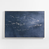 Nuestra impresión giclée de la fotografía original capta una bandada de pájaros alzando el vuelo. Apareciendo como motas de blanco contra un cielo oscuro de tonos azules profundos y modulados, la formación de vuelo adquiere una cualidad abstracta que confiere a esta obra su toque contemporáneo. Cada impresión se presenta en un marco flotante de madera con acabado natural.