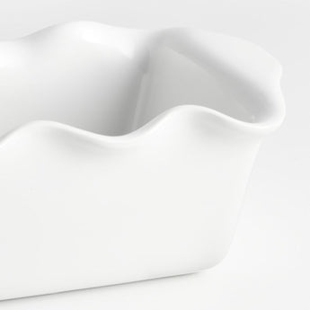 Dulces y salados van del horno a la mesa en un fresco gres blanco con bordes ondulados. Nuestro molde para pan con volantes hornea y presenta pan de calabacín, pastel de carne y babka de canela con un estilo encantador y clásico. Esmaltado a mano en blanco brillante, nuestro exclusivo molde es apto para microondas, congelador, horno y lavavajillas para una preparación flexible y una fácil limpieza.