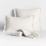 Un tejido irresistiblemente suave y esponjoso confiere a este cojín un aspecto y un tacto relajados con los que querrá acurrucarse todos los días. La inclusión de viscosa sedosa añade un brillo sofisticado a la belleza orgánica de las fibras de lino de origen sostenible. Teñida en un elegante color marfil, la almohada con flecos luce chic y desenfadada sobre un sofá, un sillón o una cama, especialmente combinada con la manta a juego.