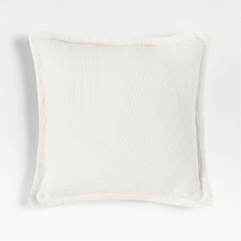 Nuestro cojín Lindoso, una versión discreta de lo tropical, muestra las bellas complejidades de las hojas de palmera. Las texturas botánicas tonales ofrecen una actualización moderna de los motivos florales jacquard tradicionales, para un look que puede ir formal o relajado. Nos encanta colocar esta almohada de algodón orgánico sobre una cama vestida totalmente de marfil para crear una sensación fresca y veraniega. Nuestra almohada cuadrada incluye un relleno de plumas o de plumón.