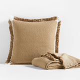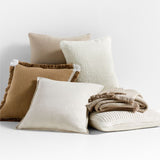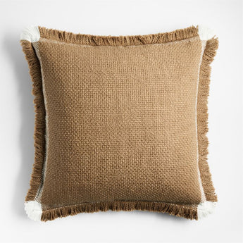 Nuestro cojín Weekend marrón camel adorna sofás, camas o sillas con un rico colorido, mucha textura y detalle de franjas en los bordes. El hilo blanco se combina con el marrón en un tejido plano a lo largo de los bordes, enmarcando la almohada cosida con semillas en una banda de marrón claro y yendo a solas en las esquinas para dar toques de blanco a los flecos cepillados. Nos encanta el atractivo artesanal de la almohada de algodón orgánico, logrado por hábiles artistas textiles que dedican horas a perfeccionar cada almohada.