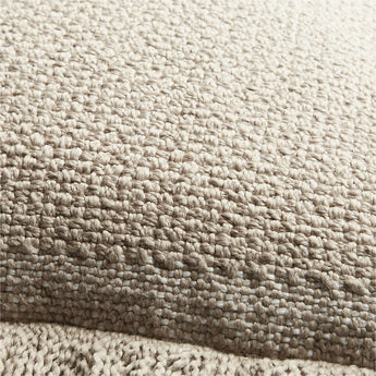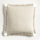 Nuestro cojín Weekend beige adorna sofás, camas o sillas con un rico colorido, mucha textura y detalles de franjas en los bordes. El hilo blanco se combina con el beige en un tejido plano a lo largo de los bordes, enmarcando la almohada cosida con semillas en una banda de beige claro y yendo a solas en las esquinas para dar toques de blanco a los flecos cepillados.
