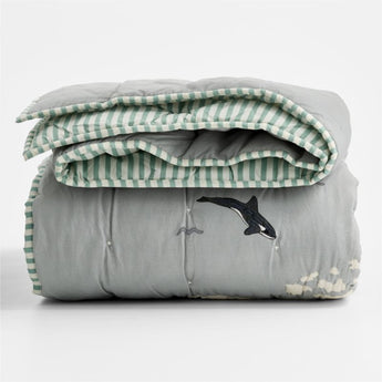 ¿Un viaje a Australia antes de acostarse o quizás al Polo Norte? Nuestra colcha Explorer acolchada a mano despertará sueños de lugares lejanos. Presenta un mapamundi decorado con ilustraciones de animales e iconos regionales, y se invierte a un estampado de rayas verdes y blancas para una elegante versatilidad. La gasa de algodón ofrece la mejor experiencia de descanso de ambos mundos, con un tacto suave y acogedor pero lo suficientemente fresco para los durmientes calurosos. Combínelo con nuestro juego de sábanas Explorer y la funda para un look completo de trotamundos.