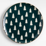 Inspirado en los bosques rústicos del valle del Hudson, un bosque de árboles de hoja perenne cargados de nieve esparce nuestra fuente Árboles Verdes. Los encantadores y gráficos árboles creados mediante el proceso de resistencia a la cera ofrecen una textura sutil y un contraste gráfico en blanco cremoso contra el esmalte verde pino moteado. Cada plato de gres para servir está esmaltado a mano por hábiles artesanos, con el borde sin esmaltar que deja entrever la arcilla reciclada para un aspecto cálido y orgánico. Empareje el plato con el resto de piezas de nuestra exclusiva colección de vajilla y servicio Árboles Verdes para poner una mesa festiva tanto para las comidas invernales cotidianas como para el festín navideño.