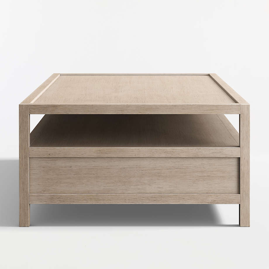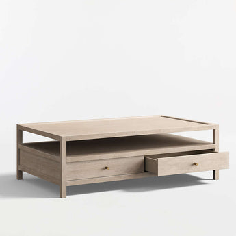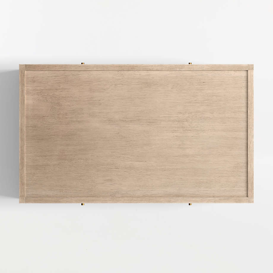 Con un acabado natural desgastado, Keane complementa cualquier decoración con líneas limpias y la belleza orgánica de la madera natural. Los detalles en canal aportan una dimensión llamativa e interés lineal a las líneas arquitectónicas de la mesa de centro rectangular. Un estante abierto de generosas dimensiones ofrece espacio para guardar revistas, libros o bandejas, mientras que cuatro cajones salpicados de tiradores brass ofrecen almacenamiento cerrado para mandos a distancia, posavasos y otros enseres del salón. Nuestra exitosa colección Keane es una exclusiva de Crate & Barrel.