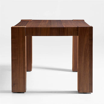Sobro aporta dramatismo a la mesa de comedor. Unas patas monolíticas de gran tamaño sostienen una gruesa plancha de madera, puntuando cada esquina con un audaz cuadrado que se prolonga hasta sobrepasar los límites del tablero. El acabado de bajo brillo de la mesa de comedor resalta el impresionante veteado catedral de la chapa de walnut . Una presencia imponente pero acogedora en el comedor, nuestra mesa de comedor Sobro walnut combina armoniosamente con sillas tapizadas de terciopelo, Windsor clásicas y bistro de madera curvada por igual.