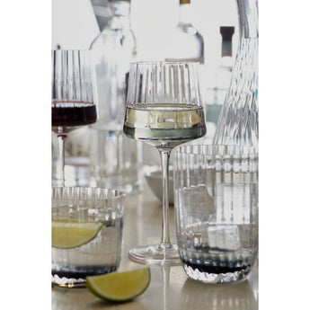 Sutilmente ondulado con muchas facetas finas, este vino blanco elegantemente cuadrado Cristal sirve pinot gris, vinho verde y gruner veltliner en estilo espumoso. Elaborado a mano con cristal de color azul claro Cristal, el Cristal está fabricado por los hábiles artesanos de Krosno, un colectivo europeo que data de 1923. Empareje el vino suavemente acanalado Cristal con las demás piezas de nuestra colección óptica Ezra para una hora del cóctel o una cena festiva coordinadas.