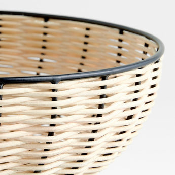 Una versión moderna de la cestería tradicional, nuestro cuenco con pedestal Amira exhibe productos frescos, panecillos de panadería o un centro de mesa lleno de plantas secas con un estilo desenfadado. Hábiles artesanos tejen ratán natural sobre un armazón de hierro negro soldado a mano para lograr un contraste gráfico y una llamativa mezcla de materiales. Combínelo con los servilleteros Amira para una mesa coordinada.