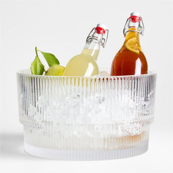 Unas brillantes hileras de Cristal estriado dan forma a esta llamativa cubitera para bebidas, la última incorporación a nuestra popular colección de bebederos Atwell Cristal . La llamativa tina presenta una superficie estriada para captar la luz mientras enfría hasta cuatro botellas de vino o champán.