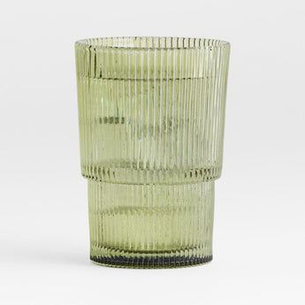 Brillantes hileras de copas de cóctel de forma acanalada Cristal igualmente adecuadas para sorbos casuales de té helado y brindis formales. Llamativo en verde translúcido, el Cristal presenta una superficie estriada para captar la luz, además de proporcionar un asidero resistente. Añada la jarra Atwell para coordinar la hora del cóctel y el carro de bar. Nuestro Cristal highball verde es una exclusiva de Crate & Barrel.