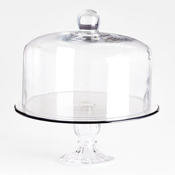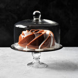 Lo moderno se une a lo tradicional en nuestro elegante soporte para tartas. El romántico acanalado de la base del pedestal recuerda a una reliquia con intrincados detalles, mientras que el plato de líneas limpias y la tapa en forma de cloche confieren al soporte para tartas un aspecto moderno. El borde plano del plato permite cortar directamente sobre el soporte, mientras que la tapa abovedada protege y conserva las tartas, los petit fours y otros dulces de celebración.