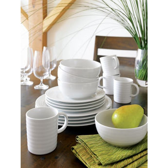 Diseñada por Martin Hunt de Queensberry Hunt, la vajilla Ruleta ha sido una de las favoritas de Crate and Barrel desde que se introdujo el diseño en 1992. Fabricada en duradera porcelana blanca pura, Ruleta presenta sutiles círculos concéntricos que crean un llamativo efecto ondulado. Mezcle y combine con nuestra vajilla Roulette Blue Band.