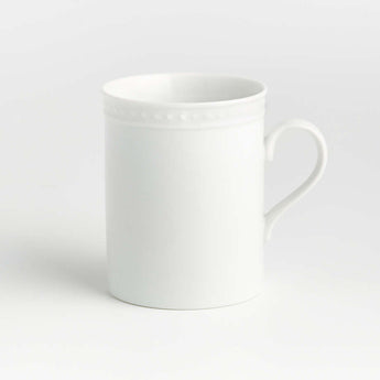 Taza de porcelana blanca Staccato de 11 onzas4altura3de diámetroLas medidas están en pulgadas.