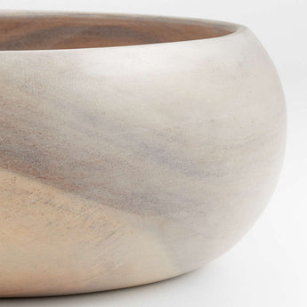 La madera de acacia ricamente veteada se convierte en suaves y esculturales elementos esenciales para servir con un acabado blanqueado que le confiere un aspecto cálido y orgánico. Naturalmente adecuados para el uso diario, el entretenimiento o la exhibición artística, nuestros exclusivos cuencos se redondean en curvas orgánicas para contener ensaladas, aperitivos, fruta o productos botánicos secos. Cada pieza está tallada en un único bloque de madera. Para una mesa bellamente coordinada, combine el cuenco con las otras piezas de acacia blanqueada de nuestra colección de vajilla Tondo.