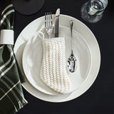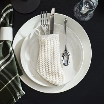 Nuestras medias favoritas se han vuelto mini. Perfectas para una mesa caprichosa, estas medias de punto de algodón orgánico están inspiradas en los acogedores jerséis navideños. Simplemente coloque un juego de utensilios en su interior como relleno de medias para la mesa. También tienen el tamaño justo para un adorno de regalo, y además son un adorable tarjetero.