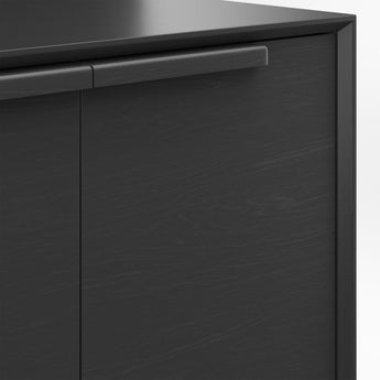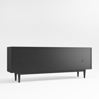 Nuestra consola multimedia Tate, inspirada en los años 60, evoca la atemporalidad del diseño de mediados de siglo con un perfil entallado y una forma aerodinámica que funciona bien en cualquier habitación. A modo de aparador, nuestro mueble para medios de comunicación ofrece un amplio espacio de almacenamiento en estanterías abiertas y cerradas para dar cabida a una gran cantidad de artículos esenciales para el hogar. Con chapa de fresno y acabado en negro, esta pieza multiusos personifica las líneas limpias y arquitectónicas del diseño moderno. Las delgadas patas cónicas se estrechan ligeramente, elevando con elegancia los frentes sin juntas de puertas y cajones de la credenza. Los tiradores lineales rebajados añaden un contrapunto horizontal a las bellas proporciones de Tate.