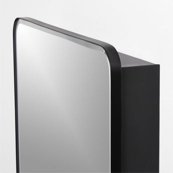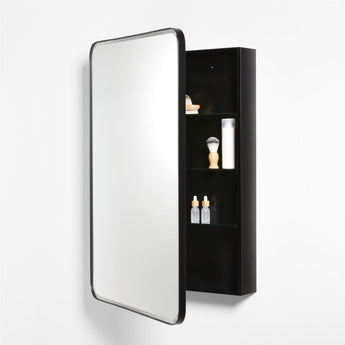 Bordeado con una fina banda negra, nuestro armario con espejo curva un rectángulo redondeado para conseguir una silueta moderna y elegante. Fabricado en acero inoxidable acabado en negro, el botiquín de líneas limpias ofrece una puerta de Cristal espejado que se abre a tres estantes ajustables. Puede empotrarse o fijarse a la pared, el gran botiquín negro complementa los cuartos de baño con su estilo contemporáneo y minimalista.