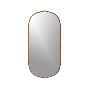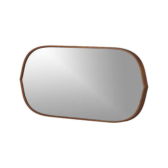 Russell Pinch hace un leve guiño a los elementos de diseño árabes clásicos en los sutiles arabescos que enmarcan la limpia forma ovalada del espejo. El espejo está enmarcado con una delgada banda de roble macizo, teñido de marrón claro walnut. Puede colgarse horizontalmente sobre un sofá o un aparador, o verticalmente para una vista de cuerpo entero.