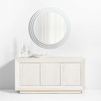 Las curvas escalonadas y el acabado en yeso confieren a nuestro espejo de pared Lewes un aspecto fresco y desenfadado que encajaría a la perfección en una villa costera bañada por el sol o en un moderno apartamento estudio. Fabricado con madera maciza de mango renovable procedente de árboles que ya no producen frutos, las atrevidas curvas del espejo están acabadas en yeso blanco sutilmente texturizado para darle un aire atemporal. Cuelgue el espejo redondo de pared sobre una consola de entrada, una chimenea o un sofá, cualquier lugar que necesite una infusión de luz y un estilo relajado pero clásico.