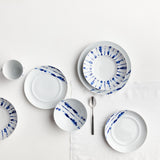 El azul tinta ondea sobre la porcelana blanca, evocando el tejido shibori teñido a mano. La sencilla forma del cuenco bajo blanco y nítido proporciona el lienzo perfecto para las bandas de azul que se dispersan en ondulaciones similares a las de la acuarela. Para completar tu mesa, combina este cuenco bajo azul y blanco con mantelería azul estampada y los demás platos y piezas de servicio de nuestra colección de vajillas Omri.