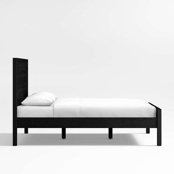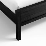 Keane racionaliza una cama moderna clásica en una hermosa caoba acabada con cepillado de alambre y un black stain para resaltar las vetas. La cama Keane presenta un armazón arquitectónico pero informal que se adapta a una amplia gama de decoraciones de dormitorio.