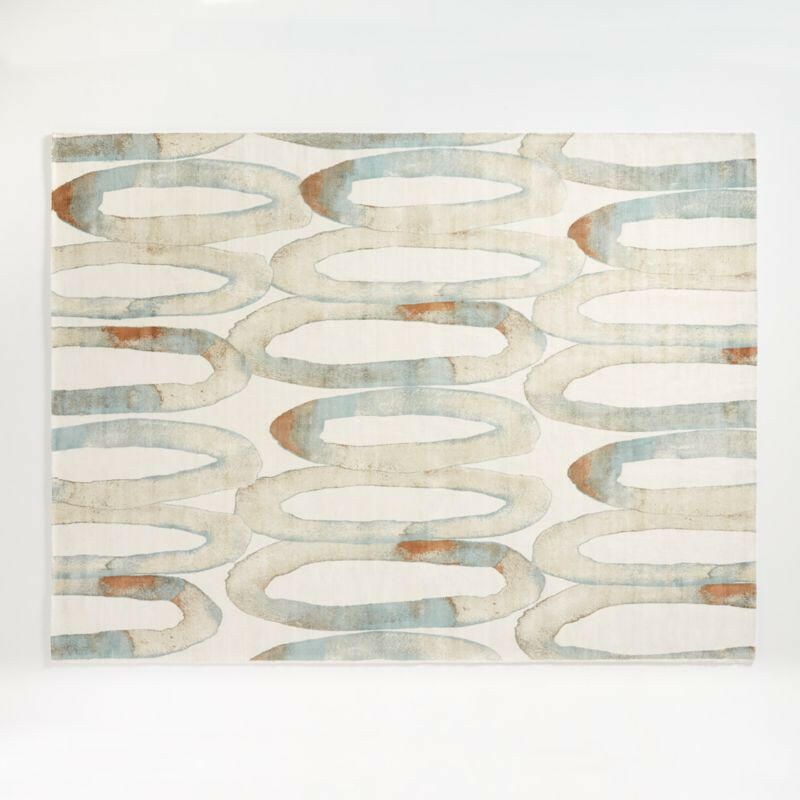 Bucles ovalados en etéreos tonos azul, rojizo y crema flotan sobre nuestra alfombra de acuarela Liotti. Con el aspecto de una obra de arte sobre lienzo, la alfombra impresa adorna el suelo con un ambiente sereno. Los bucles bajos de rayón se sienten lujosos y toman color fácilmente para un aspecto brillante. Ideal para añadir sutiles toques de color a una decoración elegante y neutra, nuestra alfombra de acuarela Liotti es una exclusiva de Crate & Barrel.
