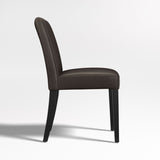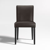 La suave piel en un rico tono marrón chocolate cubre nuestra elegante y contemporánea silla auxiliar Lowe para convertirla en la pareja perfecta de una mesa de comedor o como cómoda silla ocasional. Las opciones de silla auxiliar, sillón, taburete y banco Lowe en una gama de colores coordinados permiten mezclar y combinar un aspecto personalizado. Refinada y cómoda a la vez, con un asiento generoso, el asiento y el respaldo acolchados y ajustados de la silla de comedor Lowe de piel, acabados con doble pespunte, están perfectamente proporcionados con las delgadas patas teñidas de ébano de la the frame. La silla auxiliar Lowe de piel color chocolate es una exclusiva de Crate and Barrel .