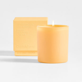 Totalmente moderna en naranja monocromático. Nuestra vela infunde el aire con los aromas de la papaya, los cítricos y el jalapeño en una mezcla tropical que evoca el sorbo de un picante Margarita en la playa. Envasada en una soleada caja de regalo naranja, el recipiente Cristal a juego lleno de cera en el mismo tono tiene un aspecto limpio y nítido que destaca sobre una mesa de centro, una cómoda o una repisa de chimenea. Parte de nuestra exclusiva colección de esencias Monochrome, la vela Nº 15 Amanecer es una exclusiva de Crate & Barrel.