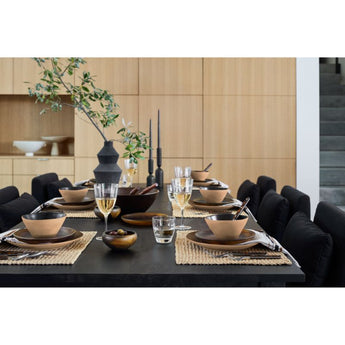 Inspirado en la apreciada cubertería de bistró, este juego de mesa de cinco piezas lleva el estilo de cafetería francesa a su mesa. Impresionantes cabezas de acero inoxidable en sándwich de carey aerodinámico a las que se ha dado un acabado vintage, asegurado con remaches visibles. El resultado es una versión moderna de la cubertería retro, sencilla y vivible con un toque de vanguardia.